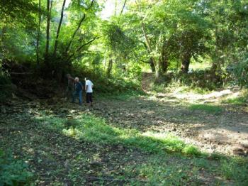 Cette fois-ci c’est le samedi à 10 h 00 que je retrouve Pascal et Thierry, Florac n’est finalement qu’à une heure et quart de Bessèges. Pendant que je me prépare Belu fait la topographie de liaison entre la sortie pérenne et la galerie en cours d’exploration en passant par le lit de la Cèze. Je parts pour six heures post siphon, une heure de plus que le week-end précédent. Je suis bien plus chargé : un bi quatre, un relais quatre pour franchir le S1, deux dévidoirs, un petit sac étanche, un décamètre. Un des deux dévidoirs servira à poser un fil et faire une topographie de ce siphon. Comme cette topographie ne peut se faire qu’à l’aller par manque d’alimentation de la partie immergé, je serais quitte pour la faire une prochaine fois.